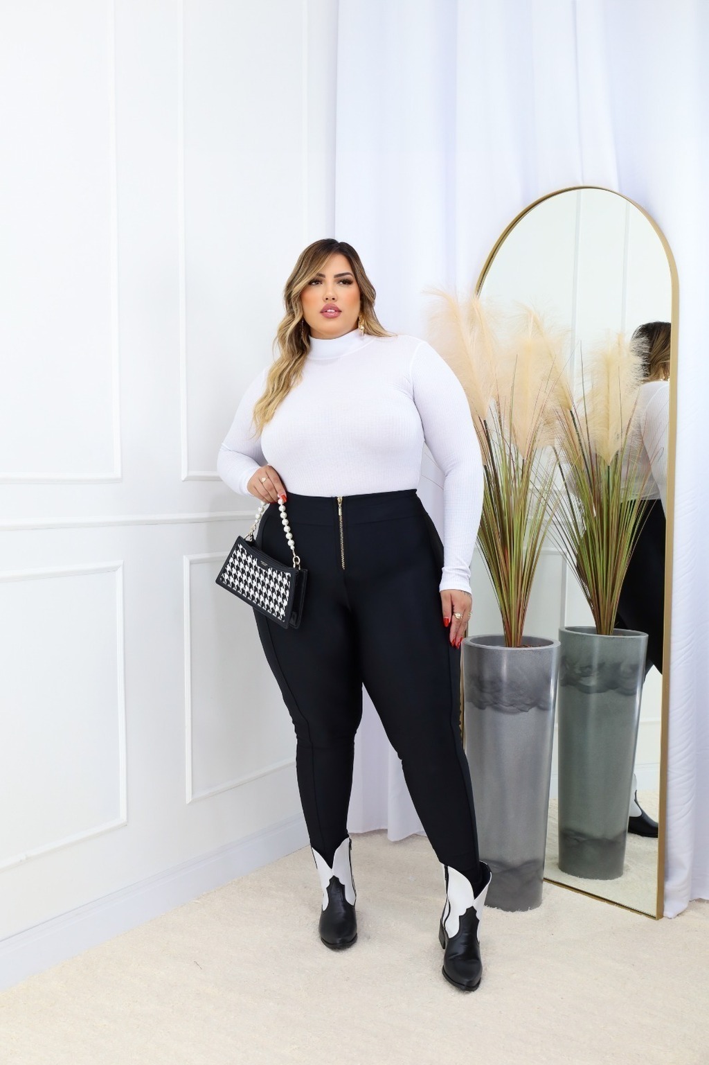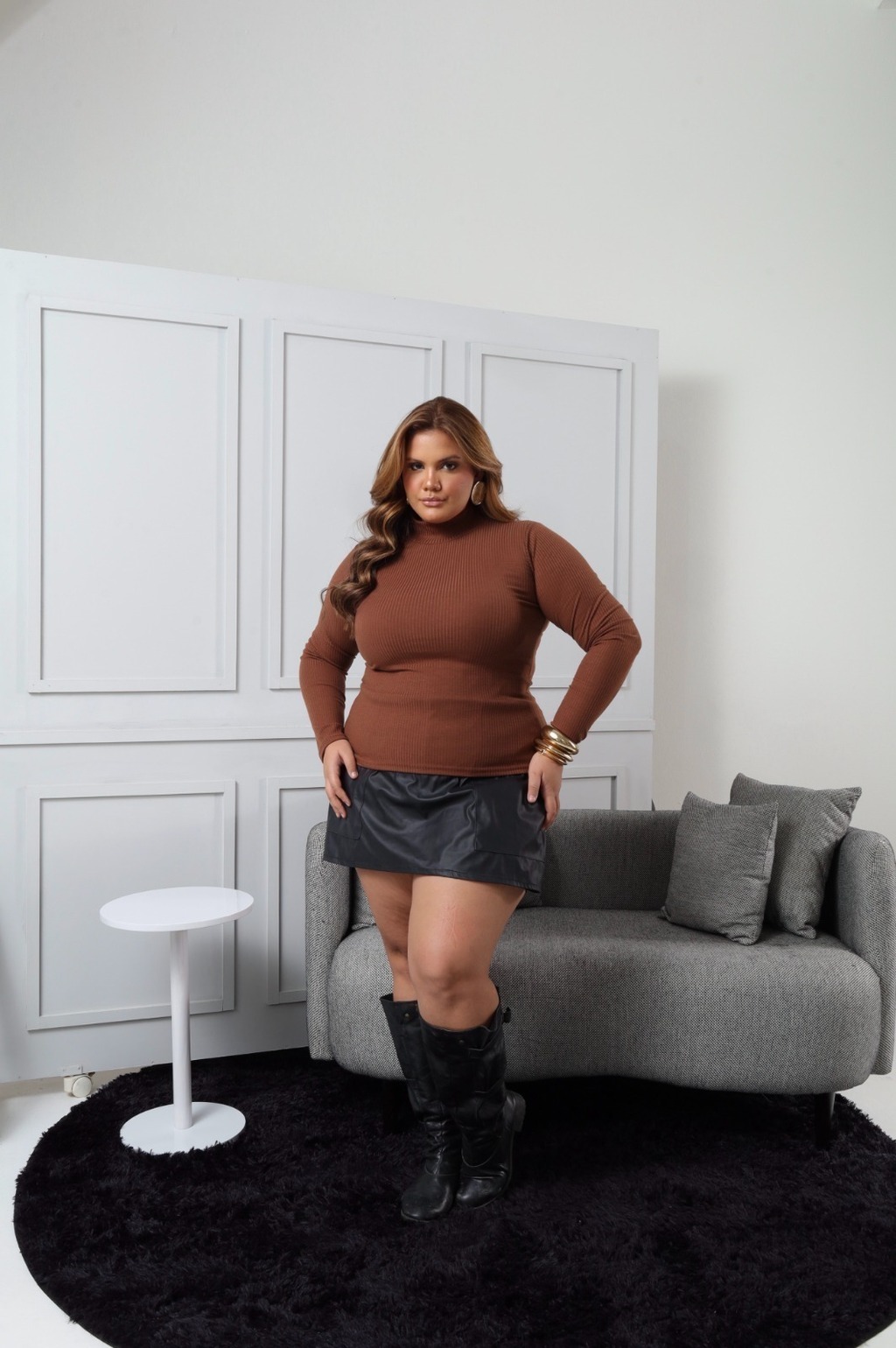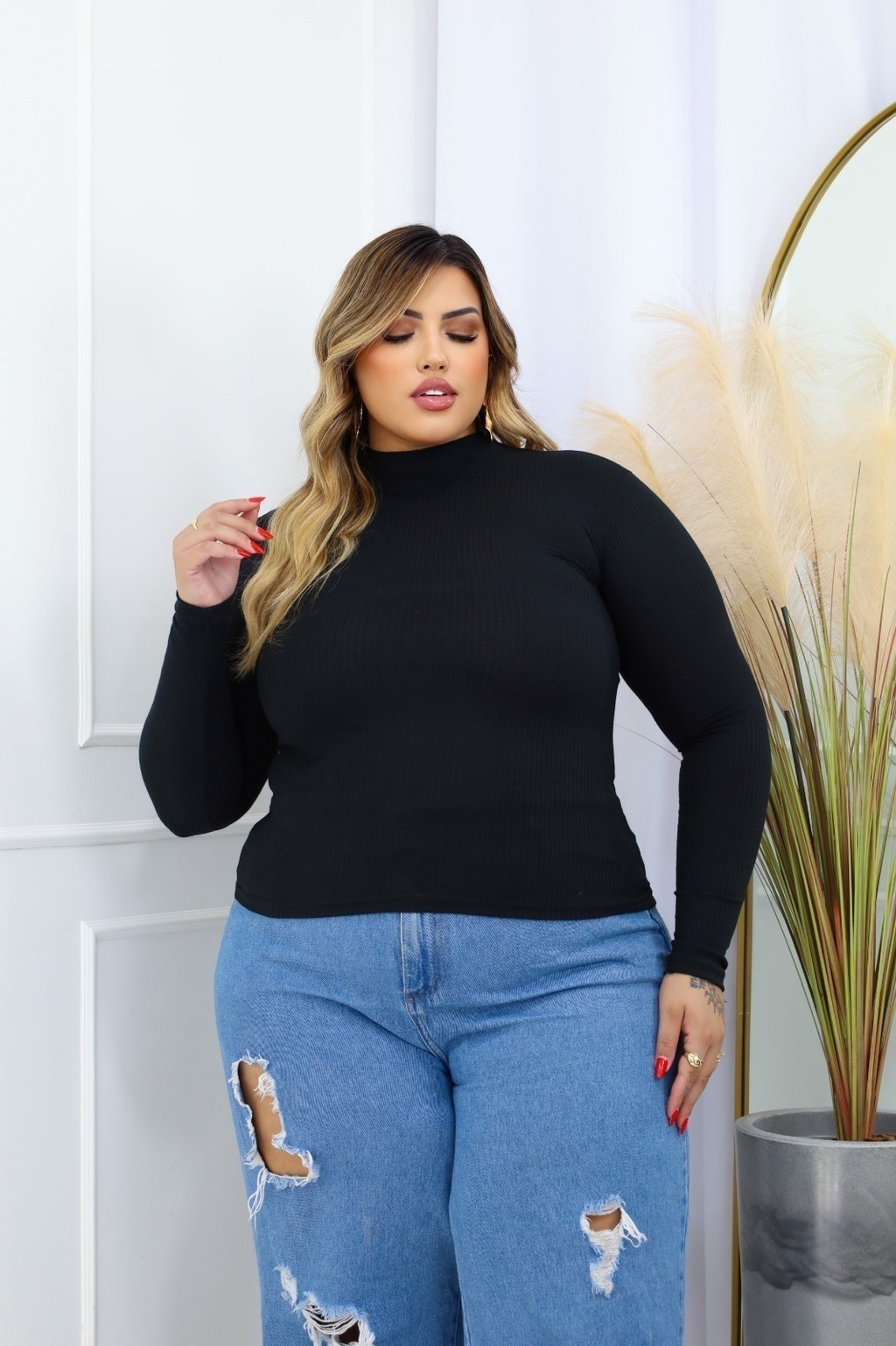 O design com gola alta e mangas longas adiciona um toque sofisticado, ideal para composições modernas e versáteis. Pode ser usada sozinha ou como base para sobreposições com coletes, jaquetas e blazers, se adaptando facilmente a diferentes estilos e ocasiões.