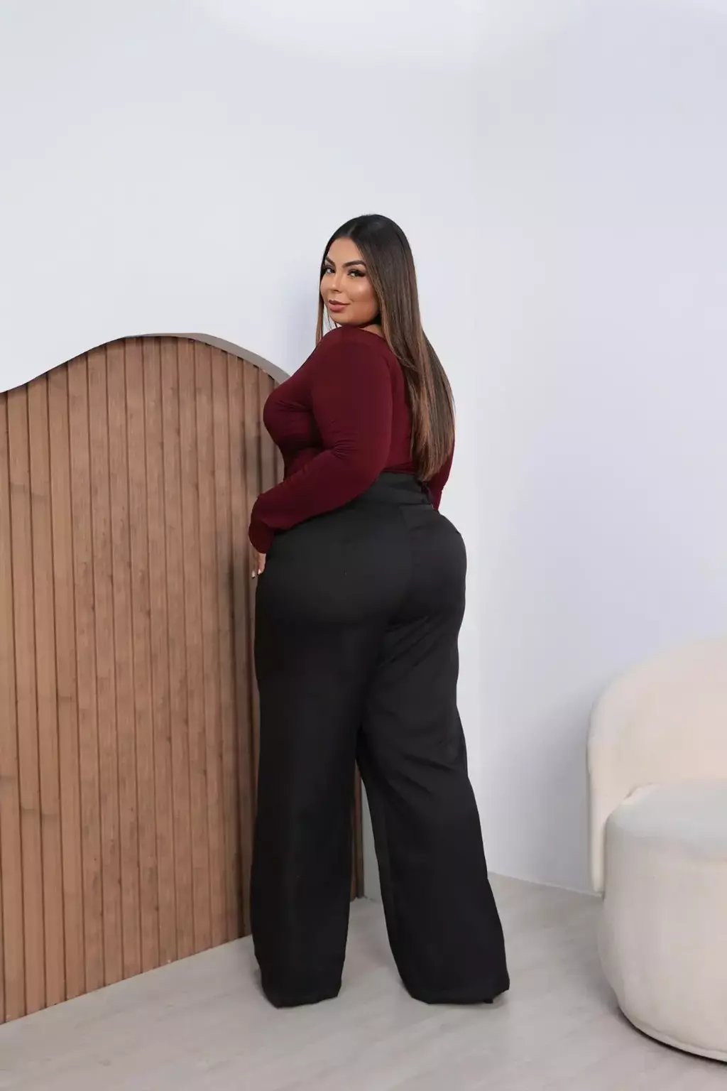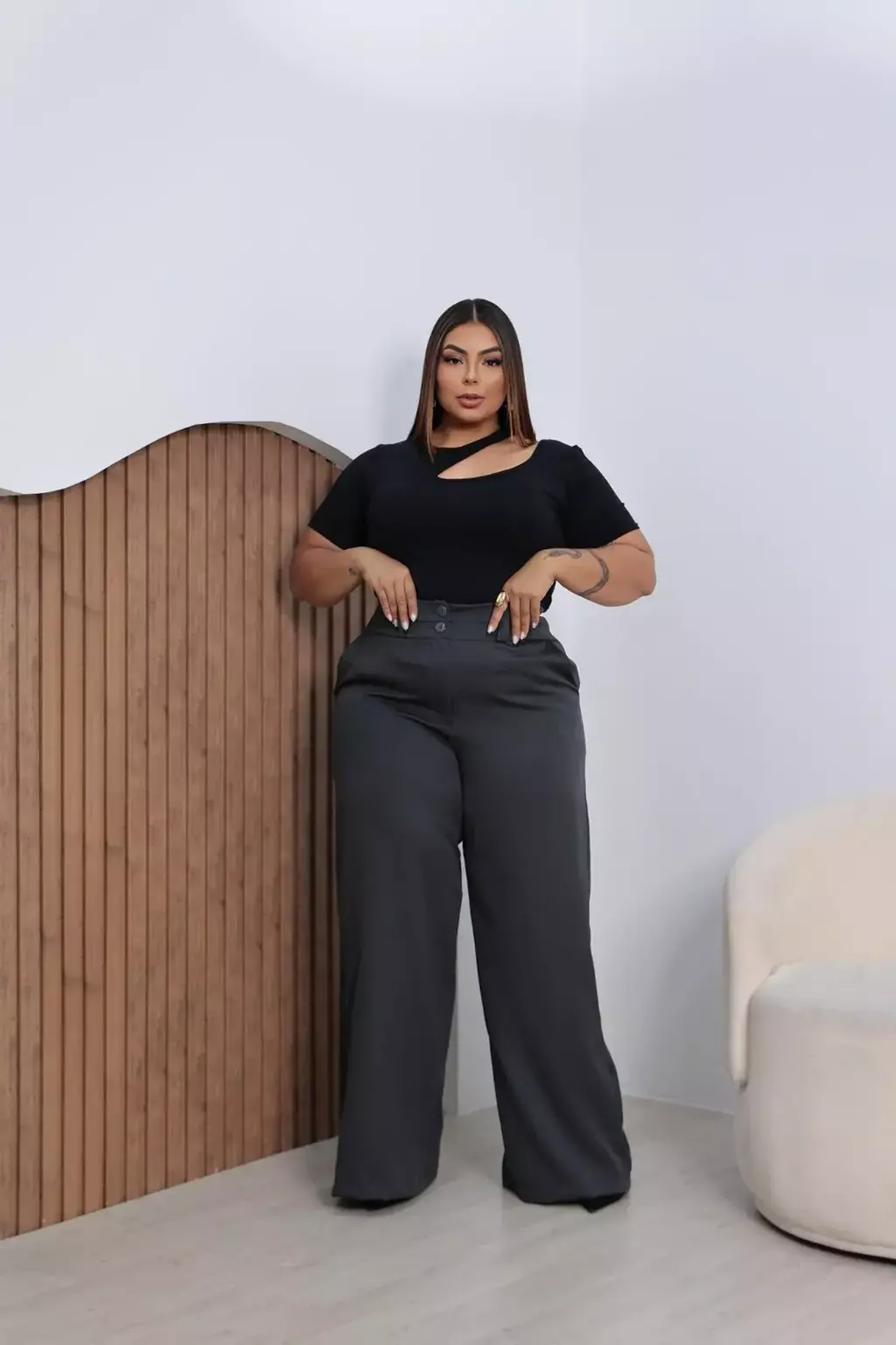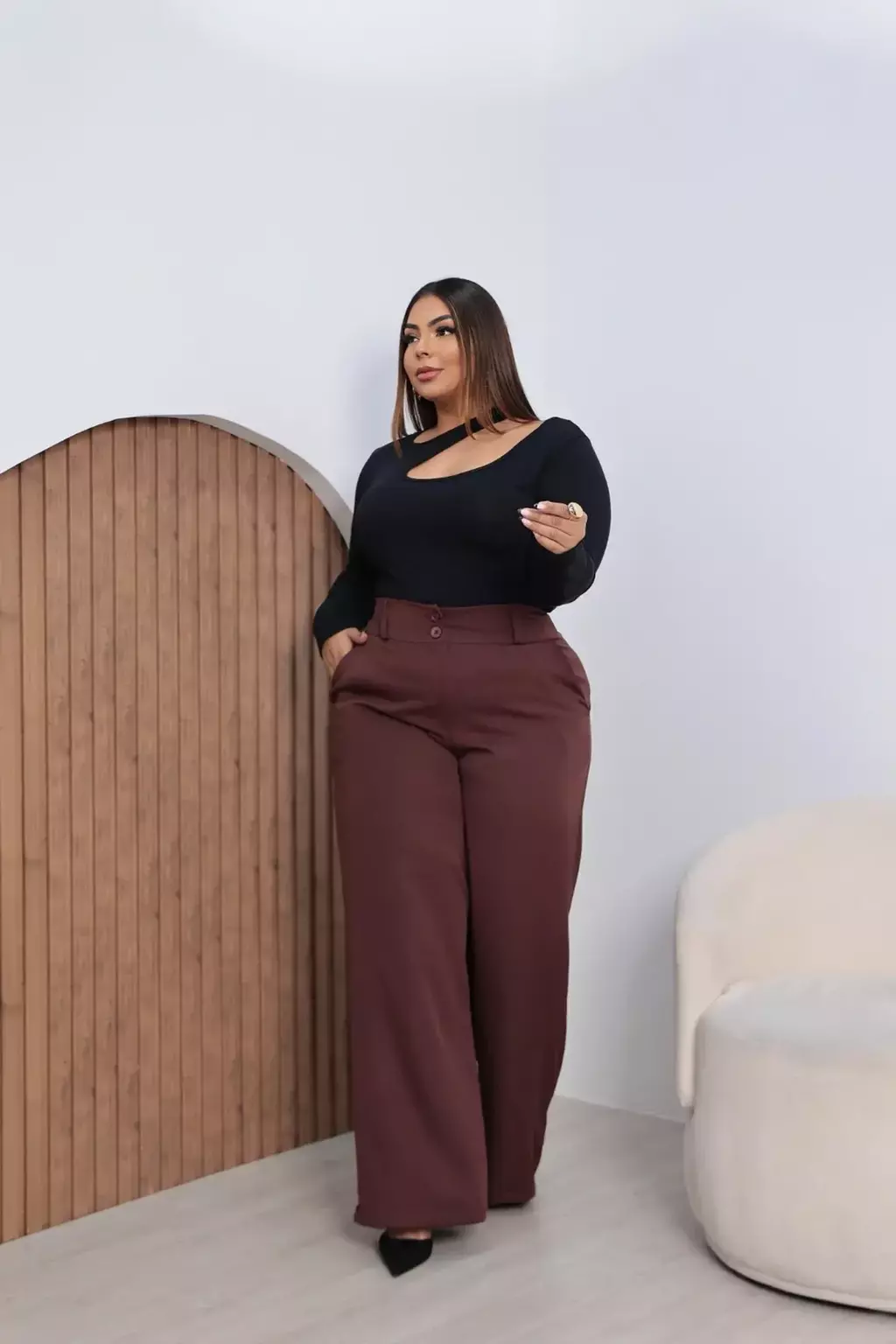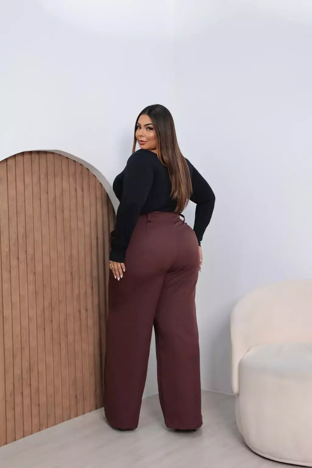 Com modelagem pantalona, ela traz sofisticação imediata ao look, alongando a silhueta e oferecendo um visual moderno e alinhado. Ideal para composições de trabalho, eventos sociais ou produções mais casuais com toque refinado.