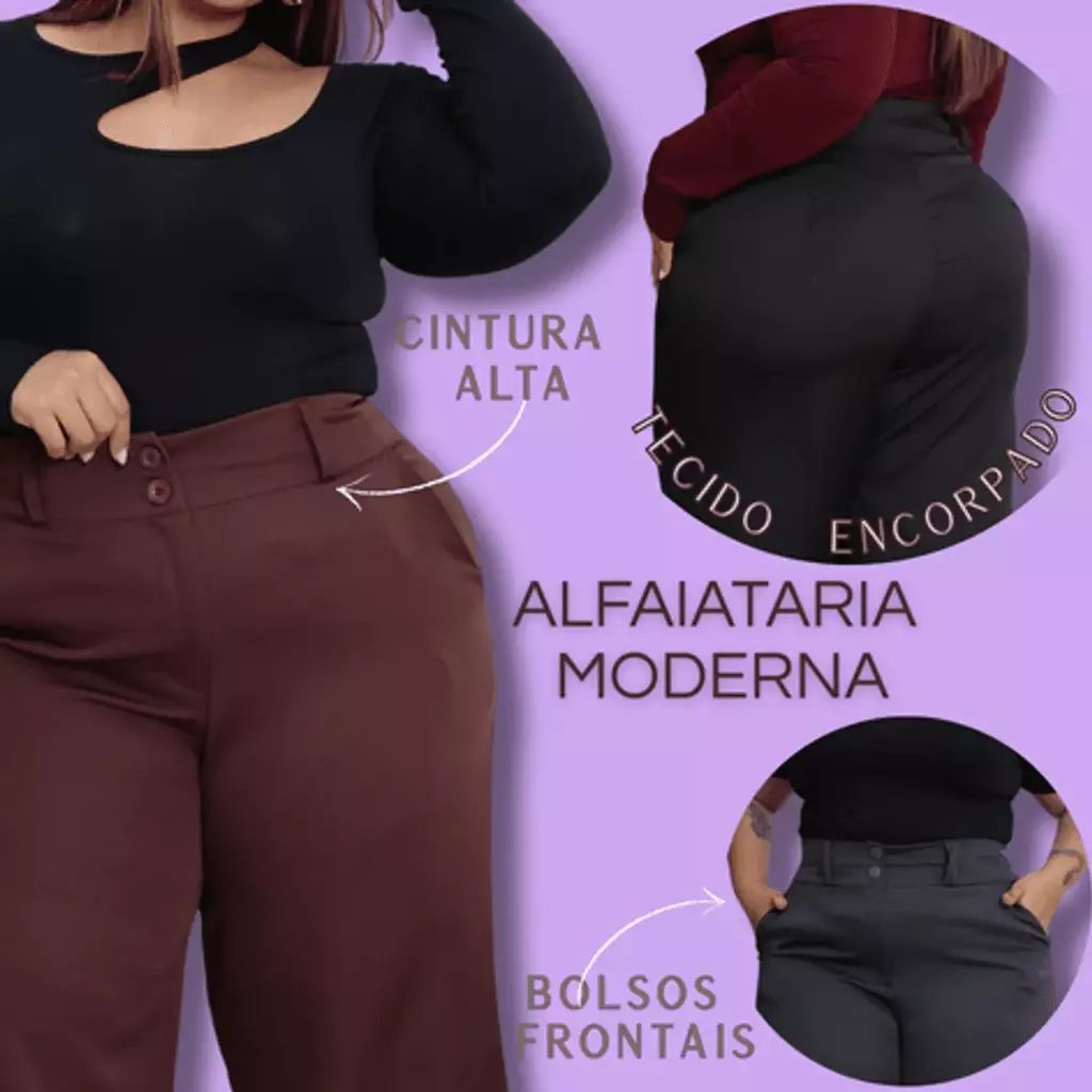 Calça de Alfaiataria Pantalona com Bolsos Frontais – Tecido com Elastano | Tamanhos 44 ao 52 (Mid e Plus Size)