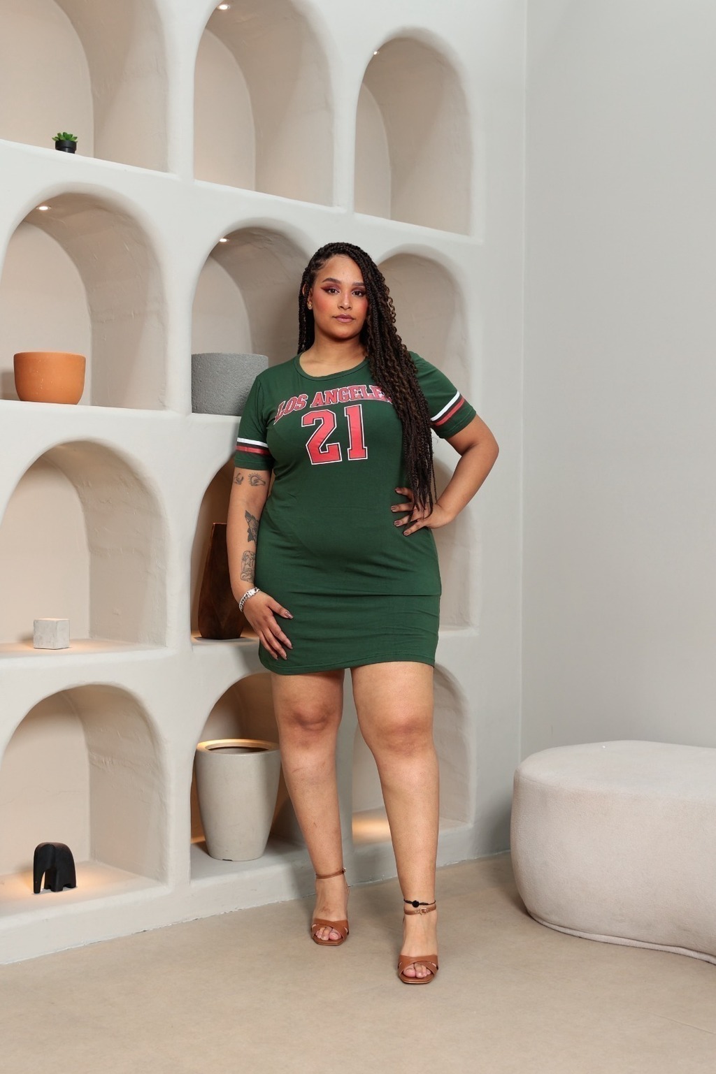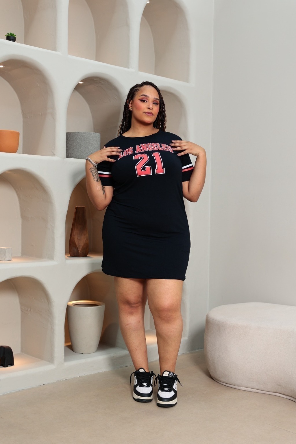 Inspirado na moda gringa e no visual street, o vestido curto camisão é a escolha ideal para quem ama produções despojadas e cheias de atitude. Confeccionado em malha leve e macia, ele garante conforto durante todo o dia, com um toque agradável e caimento solto que valoriza o corpo plus size com naturalidade.